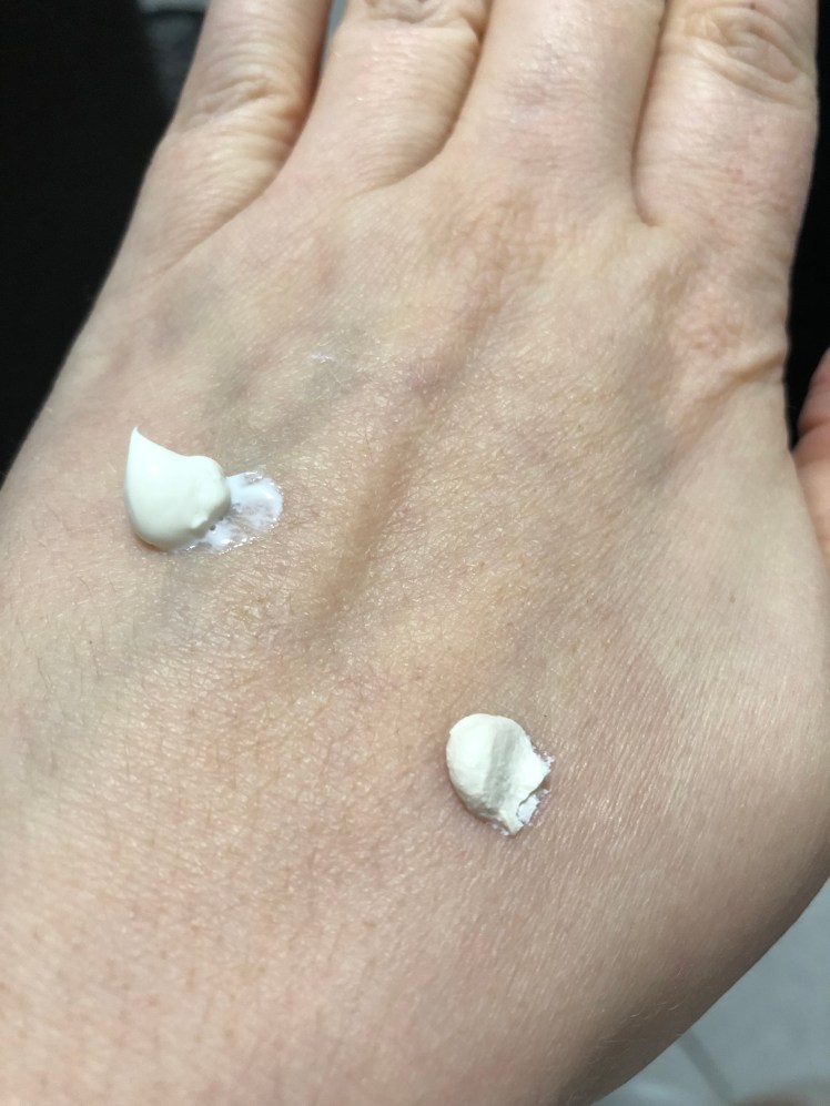 Massiere die Packung kurz vor der Entnahme und gebe die Creme erst auf die Finger. Dort reibe ich sie dann auch kurz weich und trage sie dann auf. So lässt sich sich leicht verteilen und zieht auch super weg. Ich habe keinen weißen Film auf der Haut, dunklere Hauttypen könnten einen minimalen Schleier feststellen. Die Creme ist reichhaltig aber reizt meine Haut nicht. Auch Unreinheiten werden nicht erhöht.