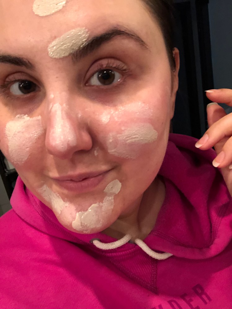 Ich schichte 2 Lagen mit je 3 Pumpstößen für mein Gesicht und meinen Hals.