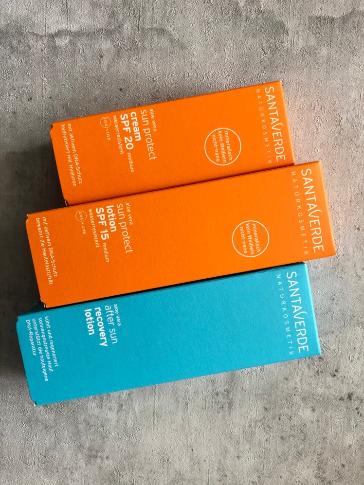 Santaverde hat nun auch Sonnenpflege auf den Markt gebracht. Dazu gehört eine Lotion mit SPF 20 für das Gesicht und eine für den Körper mit SPF 15. Zudem gibt es noch ein After Sun. Der Lichtschutzfaktor wurde hier extra gering gehalten. man wollte bei dieser Linie eine leichte Textur bewahren und diese nicht durch höhere Lichtschutzfaktoren kompromittieren. Ein SPF 20 filtert nicht viel weniger Strahlung als ein SPF 30. Hier geht es um 2-3 % der Strahlung, weswegen man sich hier daher für den niedrigeren Schutz ausgesprochen hat. Durch die cremige Textur die sich sehr leicht auftragen lässt, vergisst man denn Sonnenschutz auch nicht so leicht. Zudem enthalten die Produkte Ectoin und Hylauronsäre. Mehr dazu erwartet euch in meinem Blogpost!
