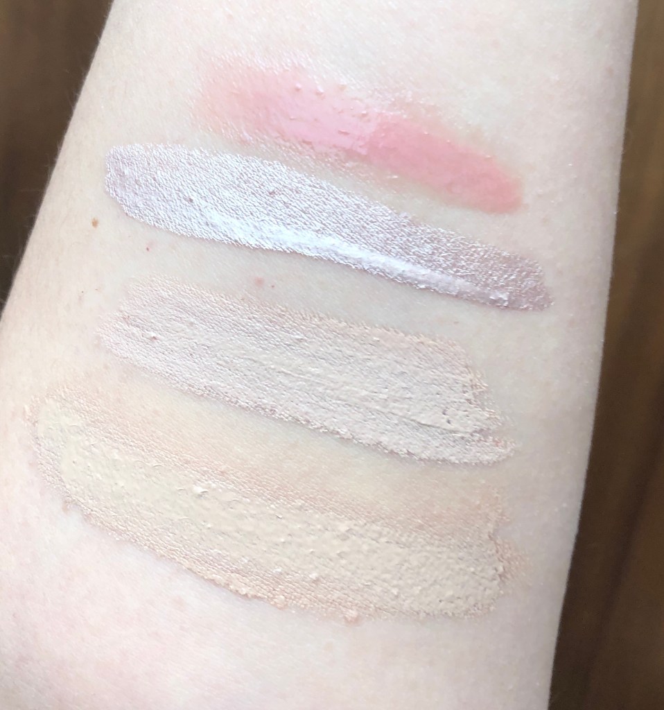 Die dekorative Kosmetik besteht aus Foundation, Concealer, Creme-Lidschatten, Highlighter, Lipgloss und Augenbrauengel.