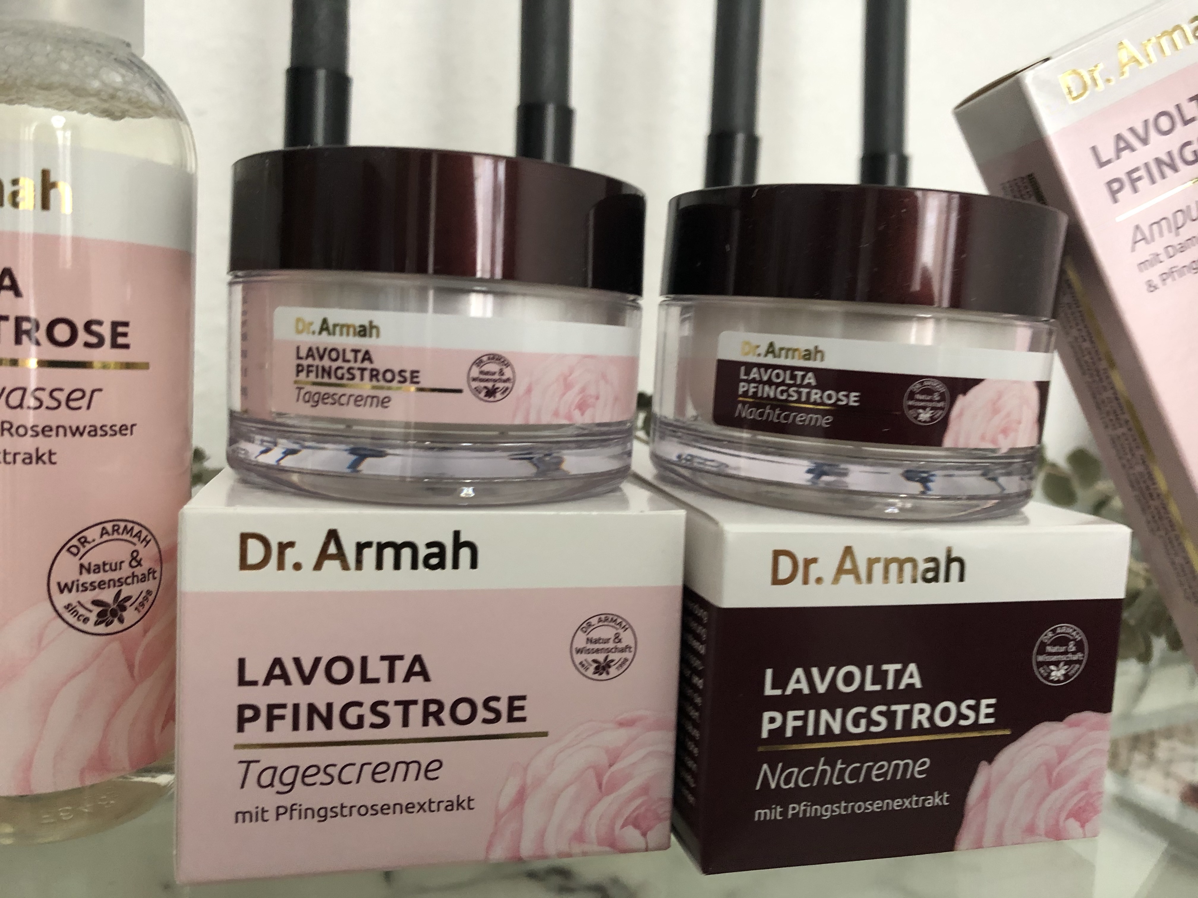 Die Nachtpflege ist etwas reichhaltiger als die Tagespflege und setzt auf Regeneration. Zusätzlich zu dem Pfingstrosenextrakt enthält die Creme Hyaluronsäure, welche die Haut aufpolstert und gegen den Verlust von Feuchtigkeit wirkt. Sheabutter und Mandelöl schließen die Feuchtigkeit ein, damit diese nicht entweichen kann. Nachts wirkt das Panthenol um die Haut zu beruhigen und die Haut zu regenerieren. Der Preis für die Cremes sehr ansprechend, denn je Creme liegt der Preis bei 21,49EUR für 100 ml! Hier geht’s lang zur Tagescreme und zur Nachtcreme.