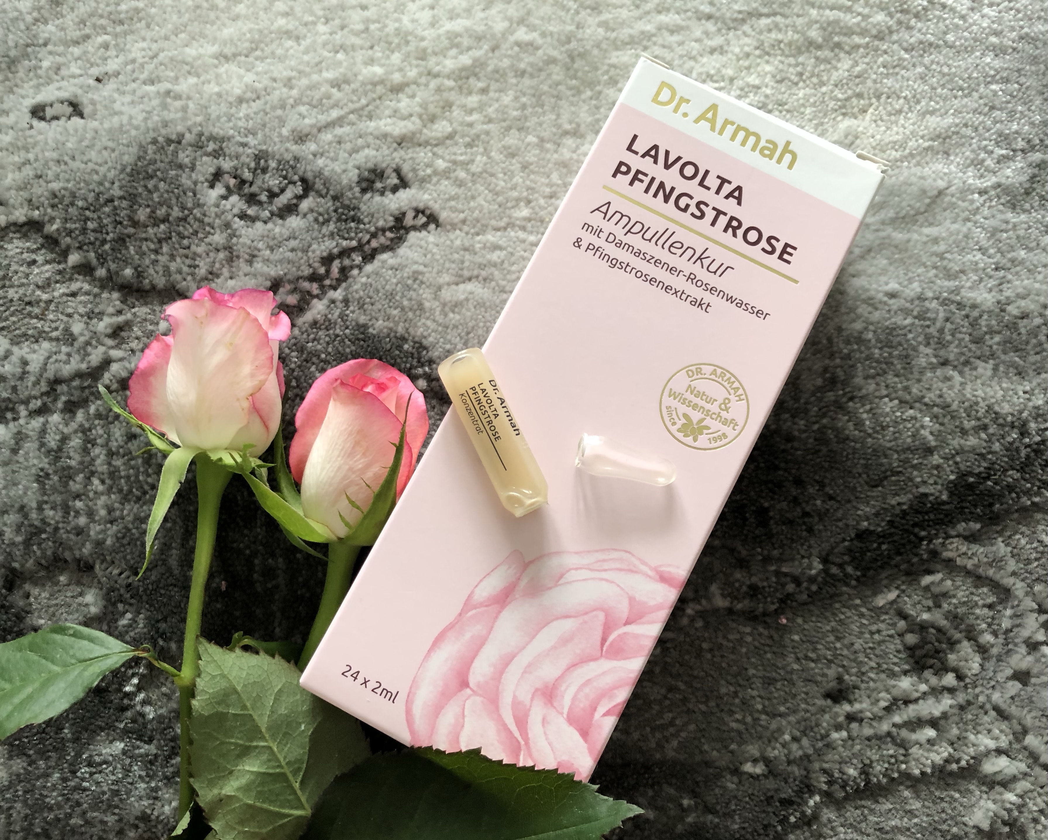 Ein Booster für die Haut gewünscht? Dann her mit der Pfingstrosen-Ampullenkur. Diese Ampullen kannst du morgens und abends auf die Haut auftragen. Entweder als Kuranwendung oder bei sehr durstiger Haut auch täglich. Hauptaufgabe dieser Kur? Eine unregelmäßige Pigmentierung zu regulieren, Hautrötungen zu minimieren und die Haut mit Schmetterlingsflieder vor äußeren Umwelteinflüssen zu schützen. Diese Anti Aging Kur hilft dadurch auch lichtbedingte Hautalterung zu reduzieren. Hyaluronsäure hilft dabei die Haut aufzupolstern, indem sie die Feuchtigkeitsdepots wieder füllt. Der Pfingstrosenextrakt hilft die Haut aufzuhellen, wirkt wie oben beschrieben entzündungshemmend und harmonisierend. Natürlich ist hier auch das Damaszener Rosenwasser enthalten.
