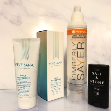 Sonnenschutz – 2019 – Vive Sana – Daily Protezione SPF 30 – Kimberly Sayer – Ultra Light Facial Moisturizer SPF 30 – Speick Sun – Sonnenmilch SPF 20 und Sonnencreme SPF 50 – Salt&Stone – Face Stick SPF 50